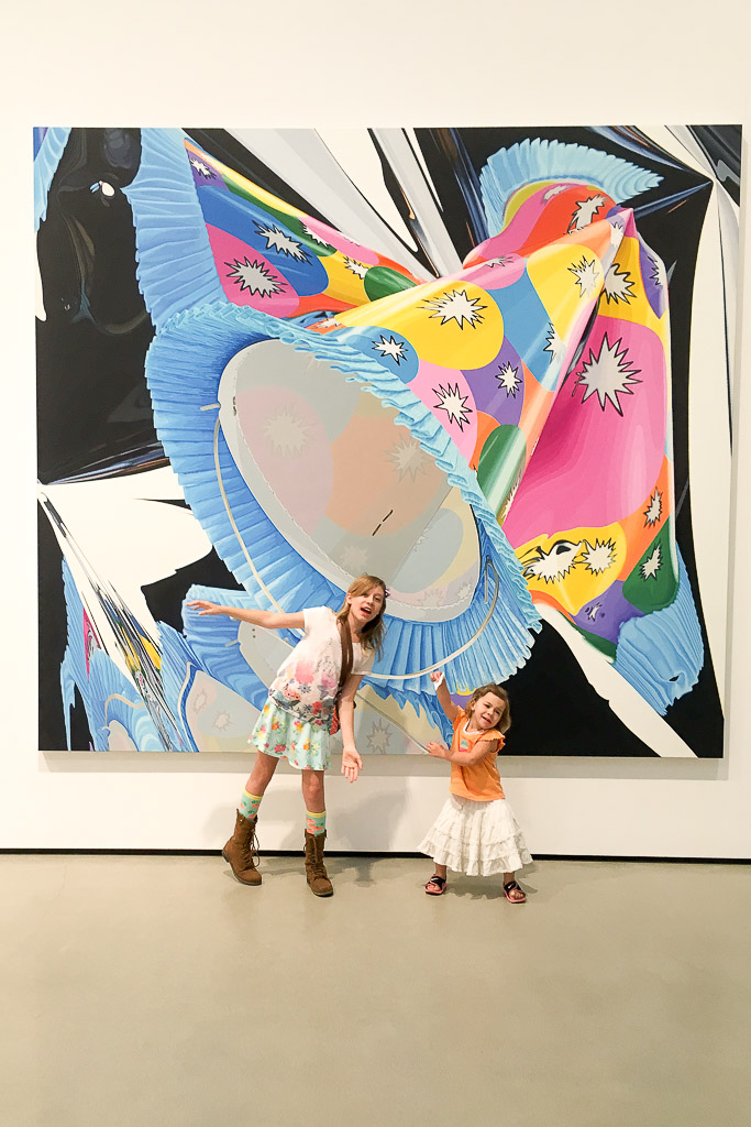 Most recently we explored the new contemporary art museum, The Broad. It’s located in downtown Los Angeles, and is home to over 2000 works of art. Although The Broad doesn’t have any art exhibits specifically designed for children, they did have an exhibit by Jeff Koons that quickly caught their attention. He is best known for creating sculpted objects cast in highly polished stainless steel. The primary example being Rabbit, 1986. His art is powerful with color and possesses qualities which quickly appeal to children.